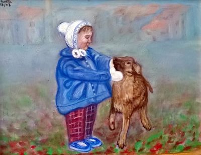 «L’immagine è dell’autrice, "Bambina degli anni ‘60", olio su tela.»