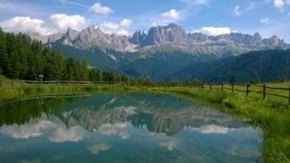 | «La foto è mia, naturalmente: Gruppo del Catinaccio e Torri del Vajolet dal Laghetto di Wuhnleger.» |